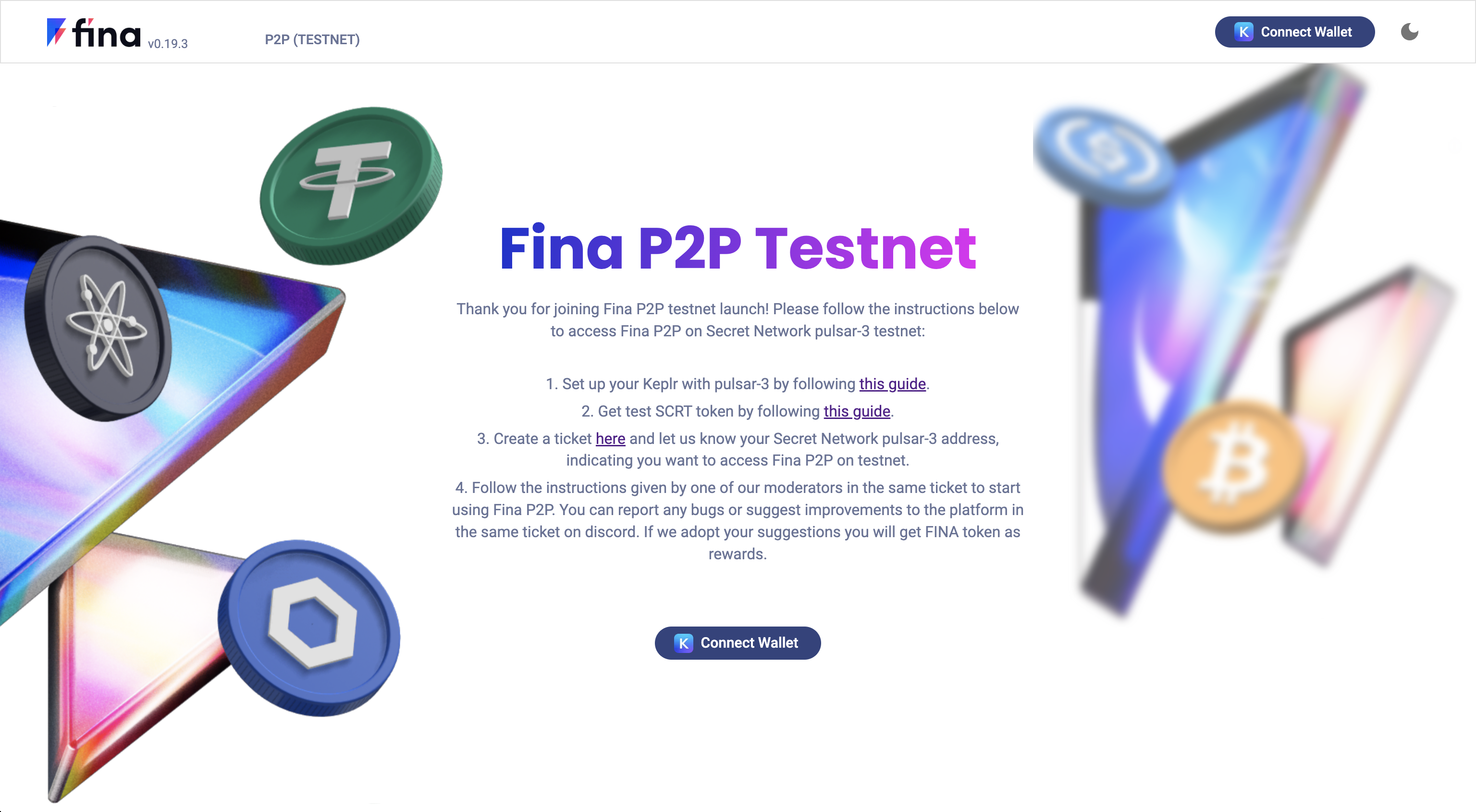 When you connect wallet for the first time, you will need to set up viewing key for FINA token and the P2P Smart Contract. Click on Set Viewing Key on the lower right corner.
